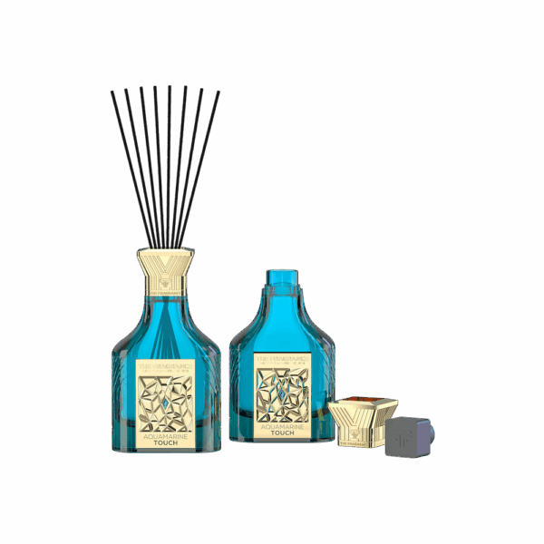 Aquamarine Touch is a sensual, audacious and contemporary scent. It’s a Woody ambery fragrance born from the sea, designed to capture our raw emotions. It opens with notes of Bergamot & Cassis. The heart offers vibrant notes of Pink Pepper and Saffron and Agarwood, the base has seductive amber, musk and leathery notes.